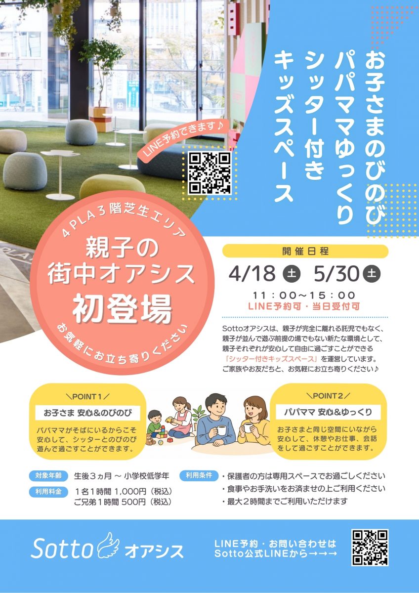 ママパパとお子さまそれぞれが羽を伸ばせる Sottoオアシス